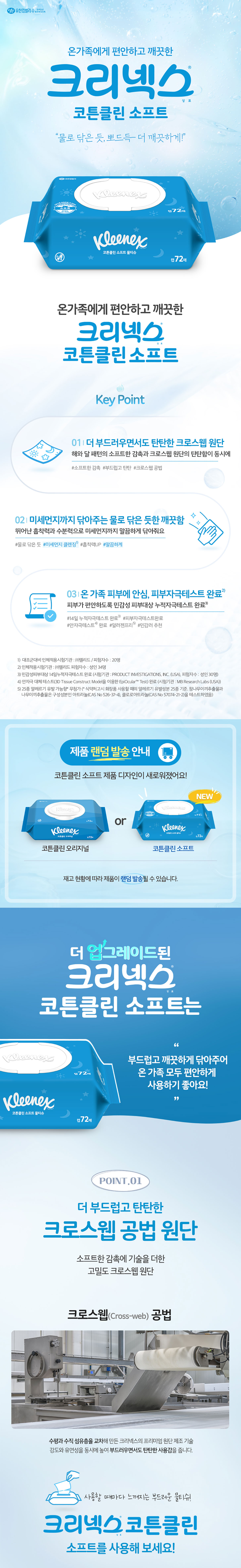 크리넥스 코튼클린 물티슈 오리지널 캡형 72매 X 6개입