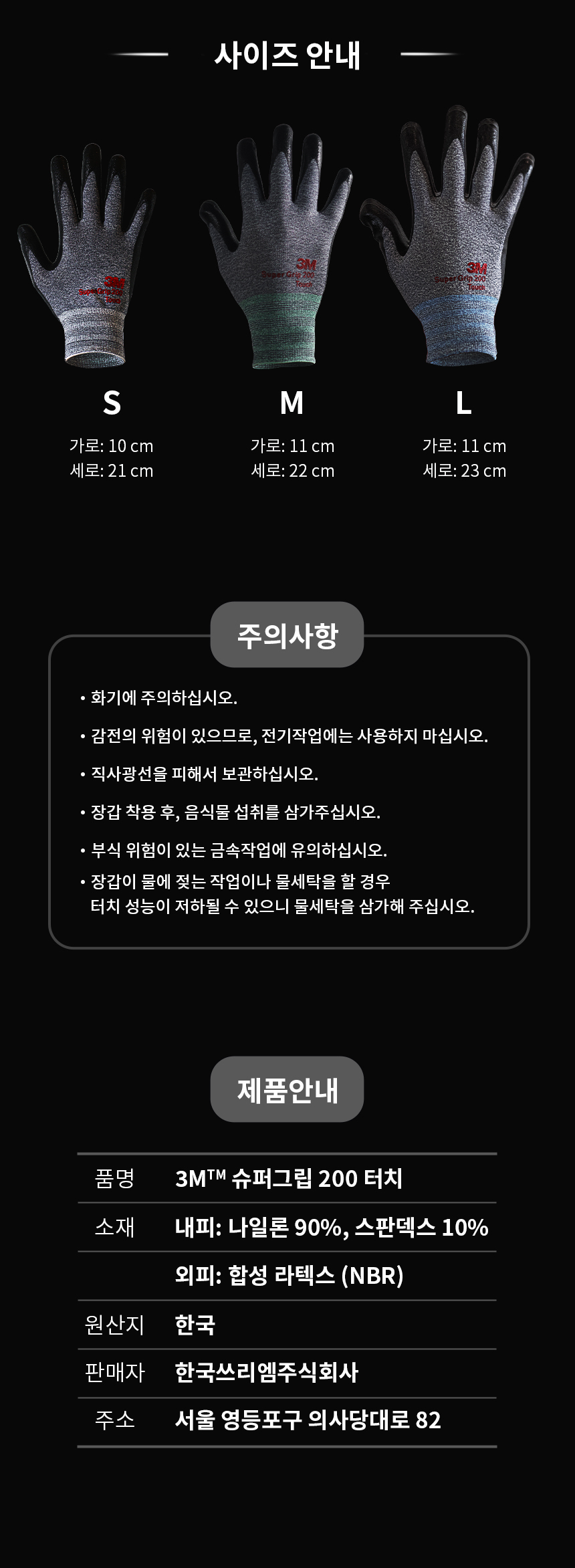 3M 슈퍼그립 200 터치 (S , M , L)