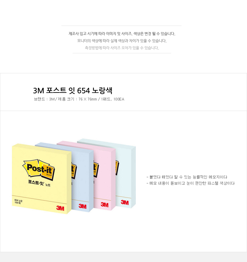 3M포스트잇 노트/ 654 / 76*76mm
