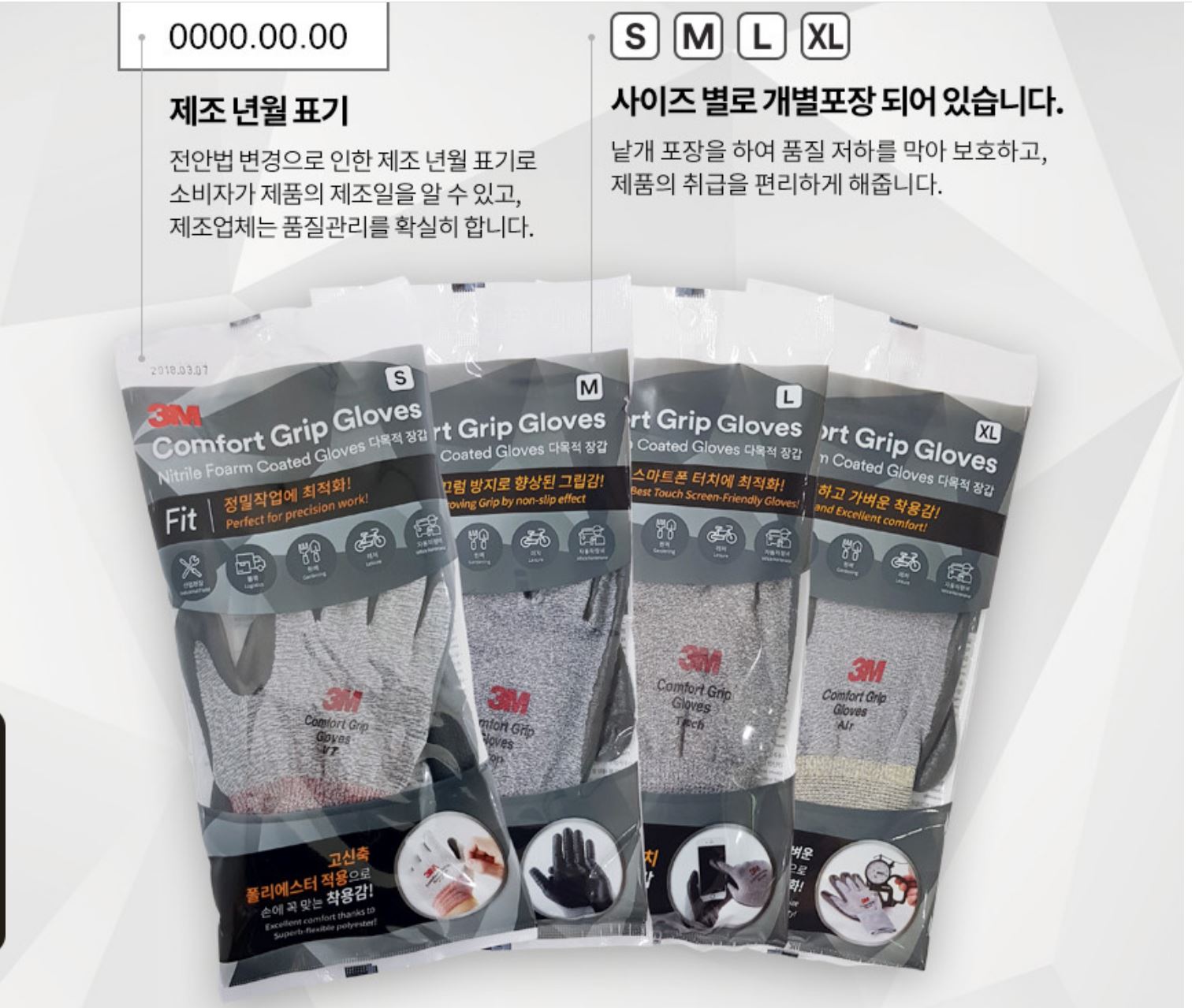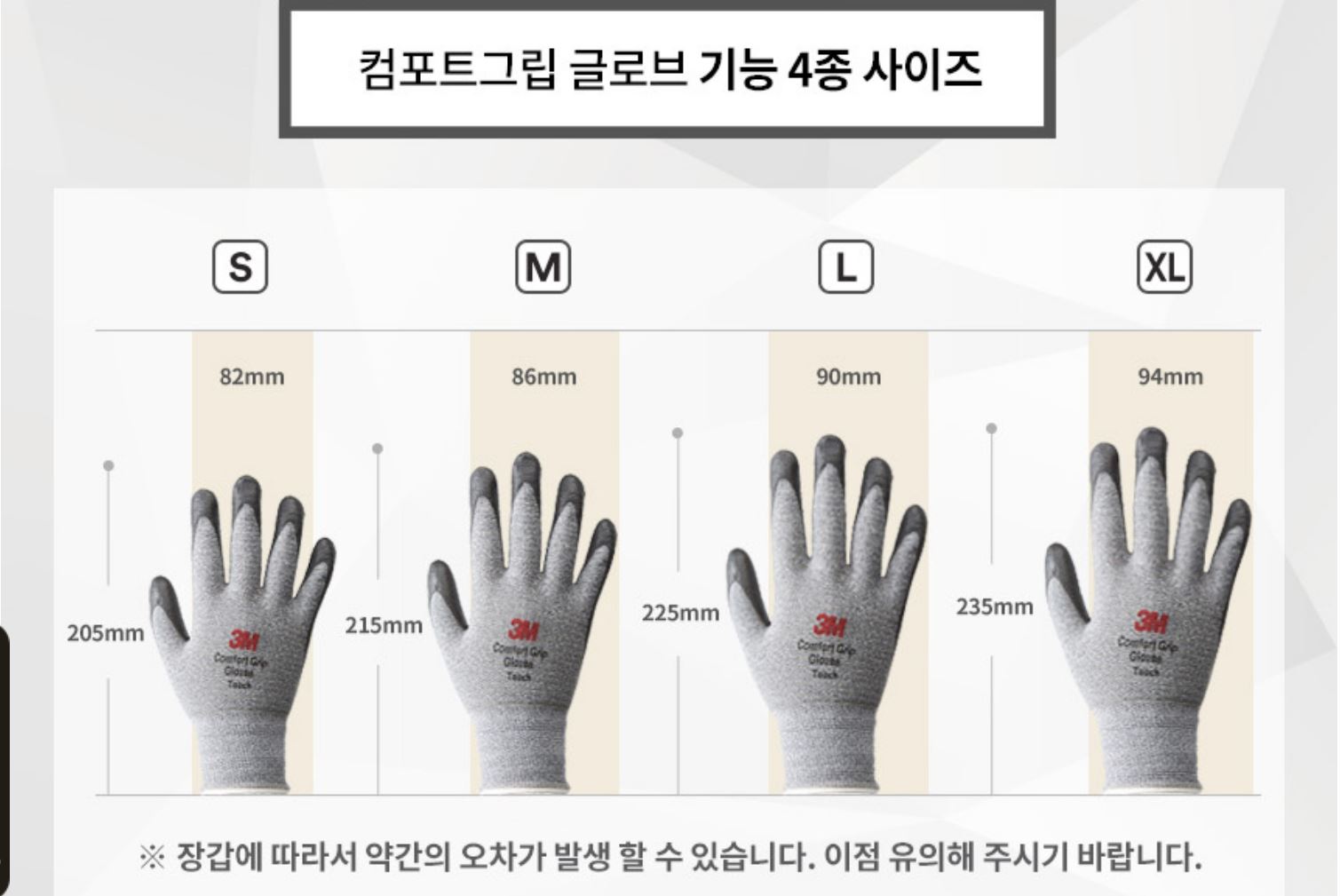 3M 컴포트 그립 장갑 - 터치 (S , M , L)