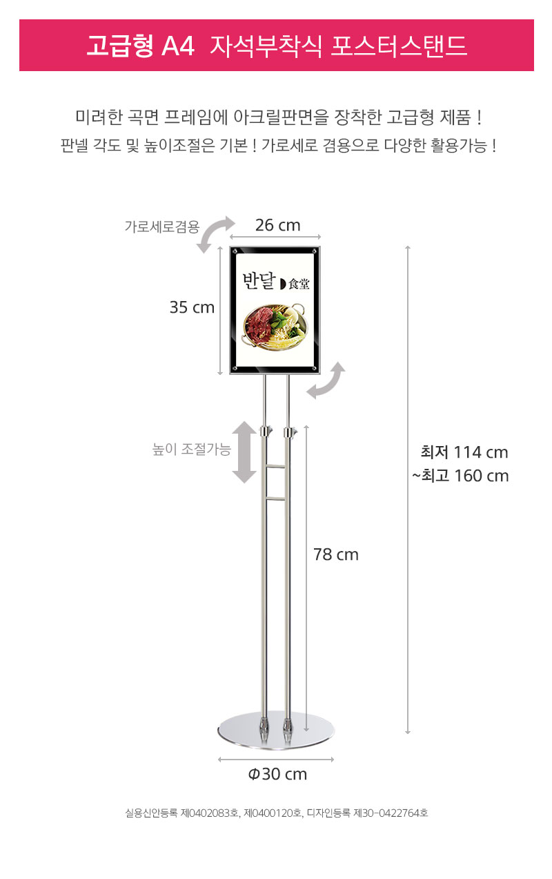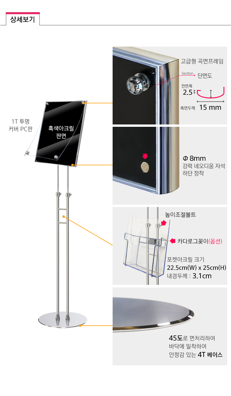 A3 고급-자석부착식/ 슬림폴 원형크롬베이스