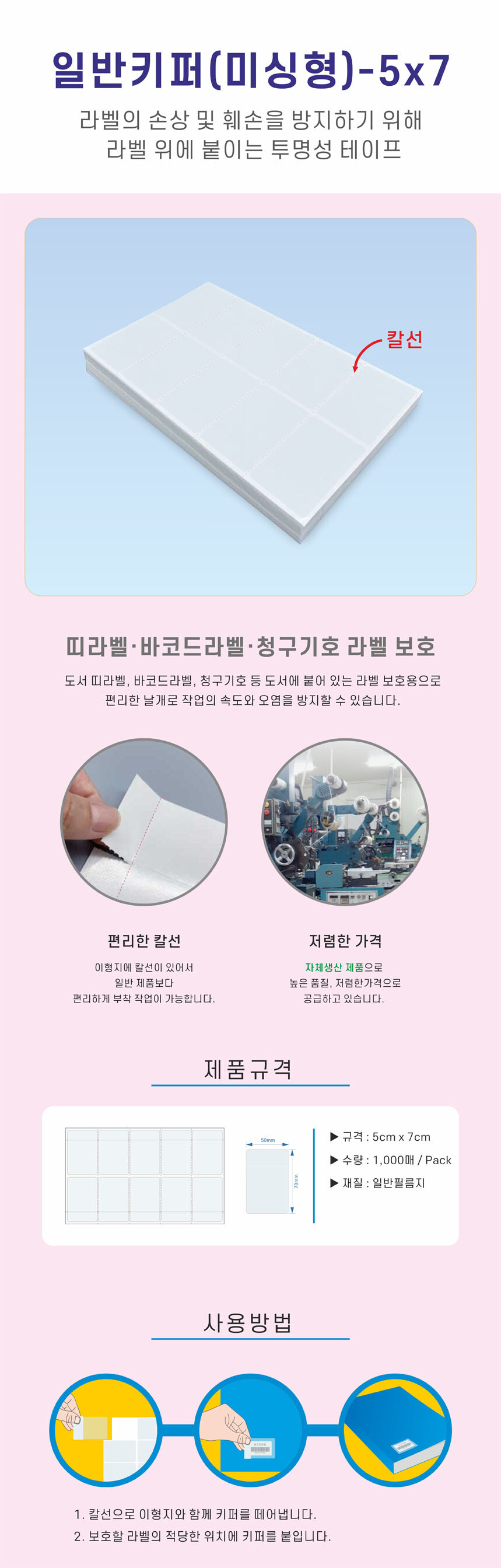 1,000매 / 묶음 - 5cm x 7cm
